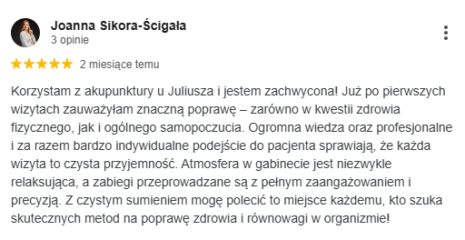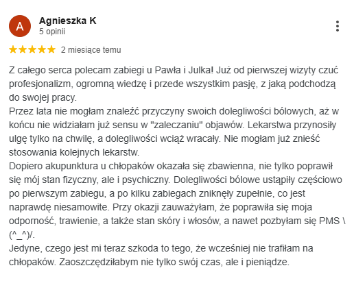 Po trzech zabiegach napady ograniczyły się do lekkiego dyskomfortu raz na dwa tygodnie, a po sześciu tygodniach zniknęły całkowicie. Ewa dołączyła ćwiczenia oddechowe, wróciła do jogi i dziś nie potrzebuje już leków przeciwbólowych.